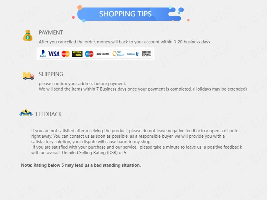 If the package you received is damaged.Please do not leave negative feedback, contact us as soon as possible. Due to the time difference, we will reply your message within 24 hours and give you a satisfactory solution. Your five-star feedback is our greatest encouragement