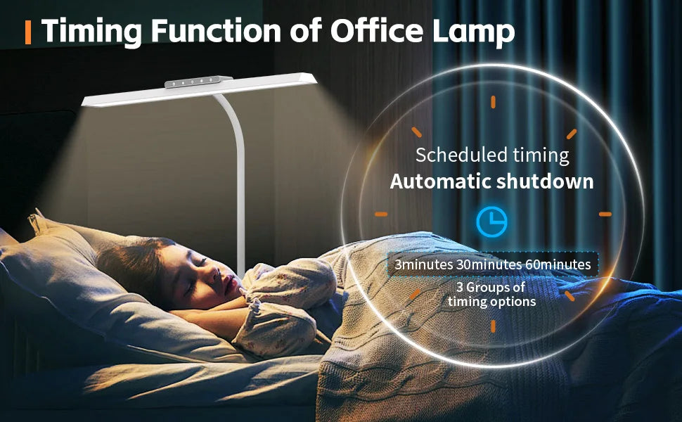 Timing Function: The desk lamp for home office can be timed, click once to extend for 3 minutes, click twice to extend for 30 minutes, click 3 times to extend for 60 minutes. When you will go sleep, you can schedule the time you need before bed.