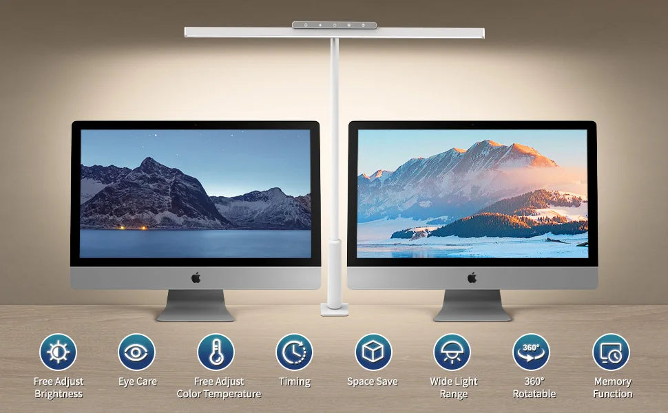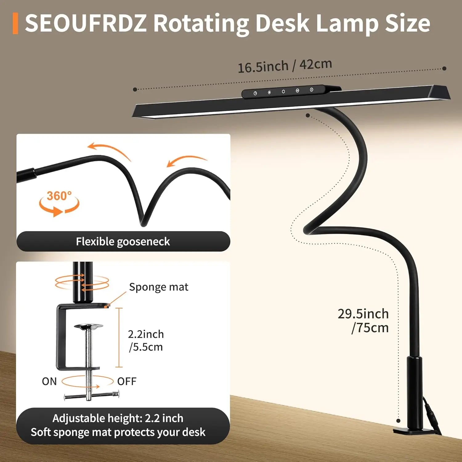 Wide light range: The 360 degree adjustable gooseneck desk lights for home office can meet any irradiation angle you want, office desk lamp fits all monitors up to 29 inches.