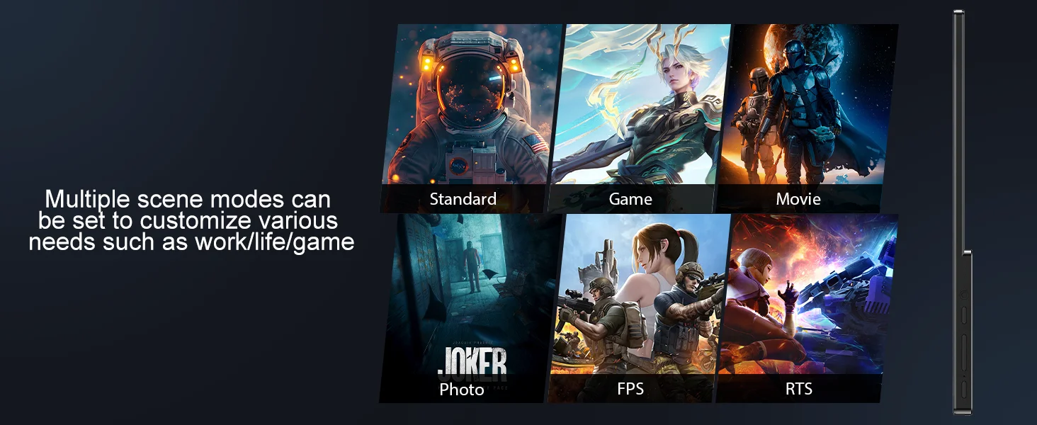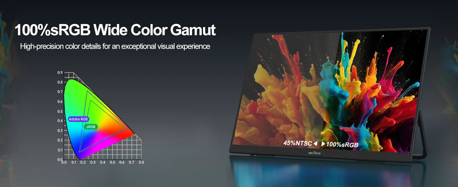 [2k Portable Display & 100%sRGB Color Gamut]: Portable screen with 2560x1600 HD resolution, clearer than 1080P. 100% sRGB wide color gamut, HDR and 16.7 million color, the large portable monitor make you immerse in vivid colors and clear details, enjoy cinema-level visual effects anytime, anywhere, every frame is lifelike