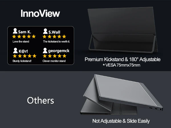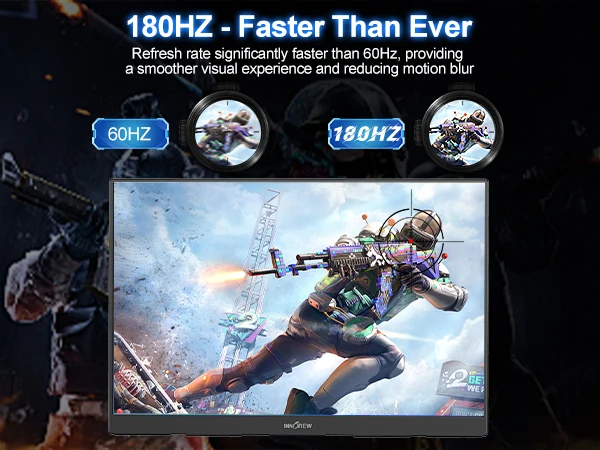 [180HZ Monitor Born for Game Victory]: It's time to upgrade your gaming experience! InnoView 180Hz portable computer monitor, with lightning-fast ultra-high refresh rate, brings you smooth images without blurring. Equipped with Freesync technology, it eliminates tearing and stuttering. Built-in 7 front sight assistance modes help you hit the target on the battlefield and become a true shooting king. Perfect for gamers to enjoy games, also suitable for professionals to work, travel, and study