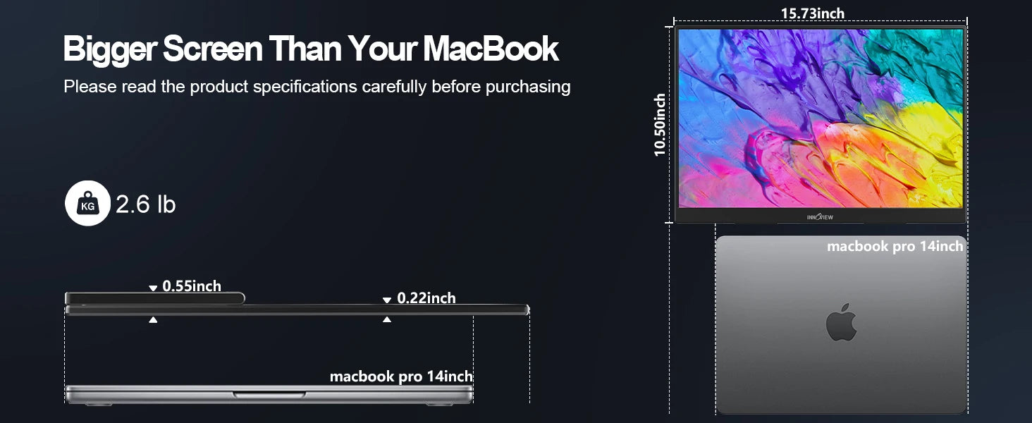 for InnoView 2K 180HZ Portable Monitor, 18'' OD Gameplus 2560x1600 QHD 100% sRGB Portable Gaming Monitor Cell Phone PC Loptop Ex