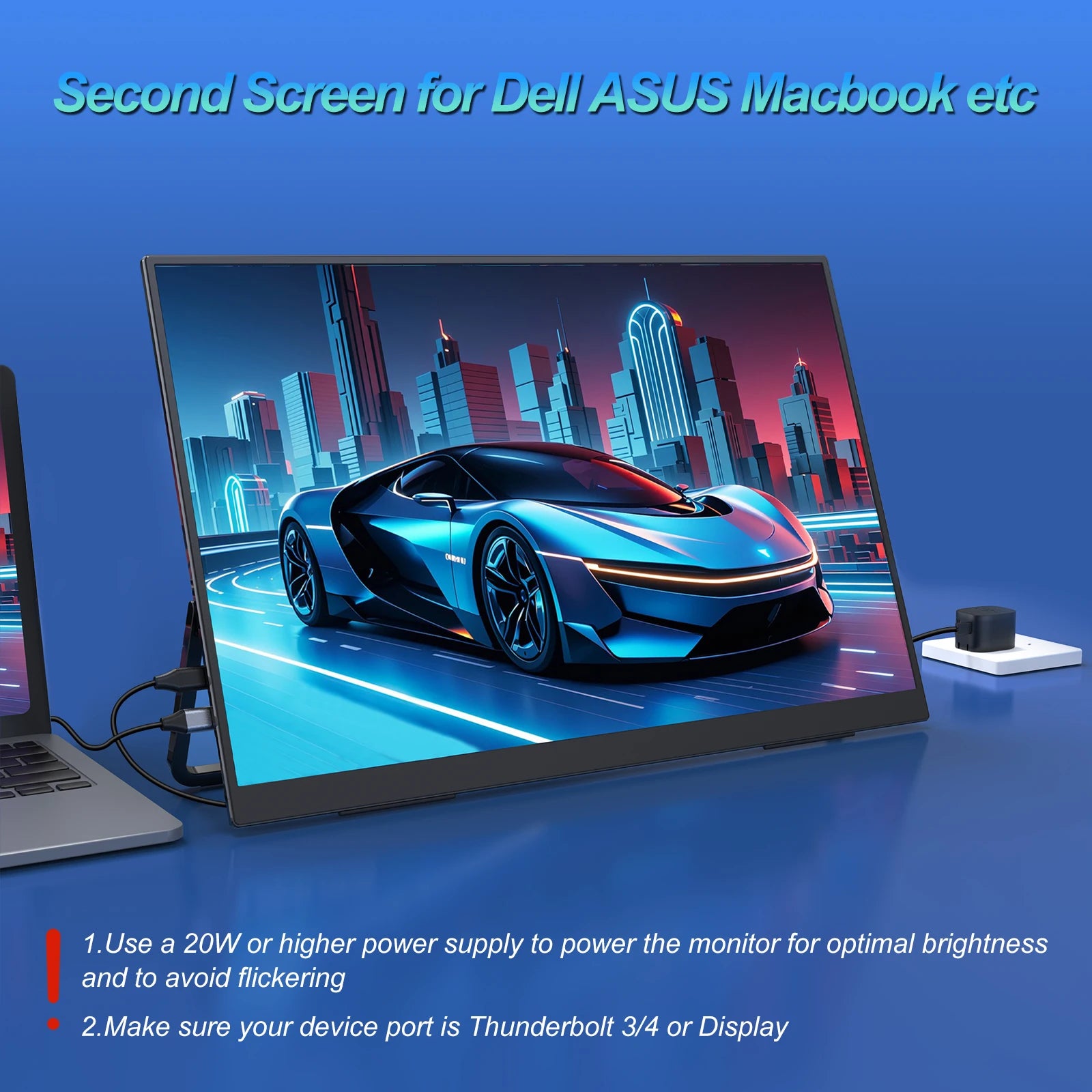 [Widely Compatible Monitor]: With 2 Type-C and a standard HDMI port(The refresh rate is only up to 120HZ via HDMI connection), it can be used with laptops, Mac, Xbox, PS5, Switch, Steam Deck, etc. No driver required. This 18-inch 2K 180Hz portable monitor requires external power for optimal performance. Please power the monitor. If you have any questions, please let us know (shown on the back of the monitor)