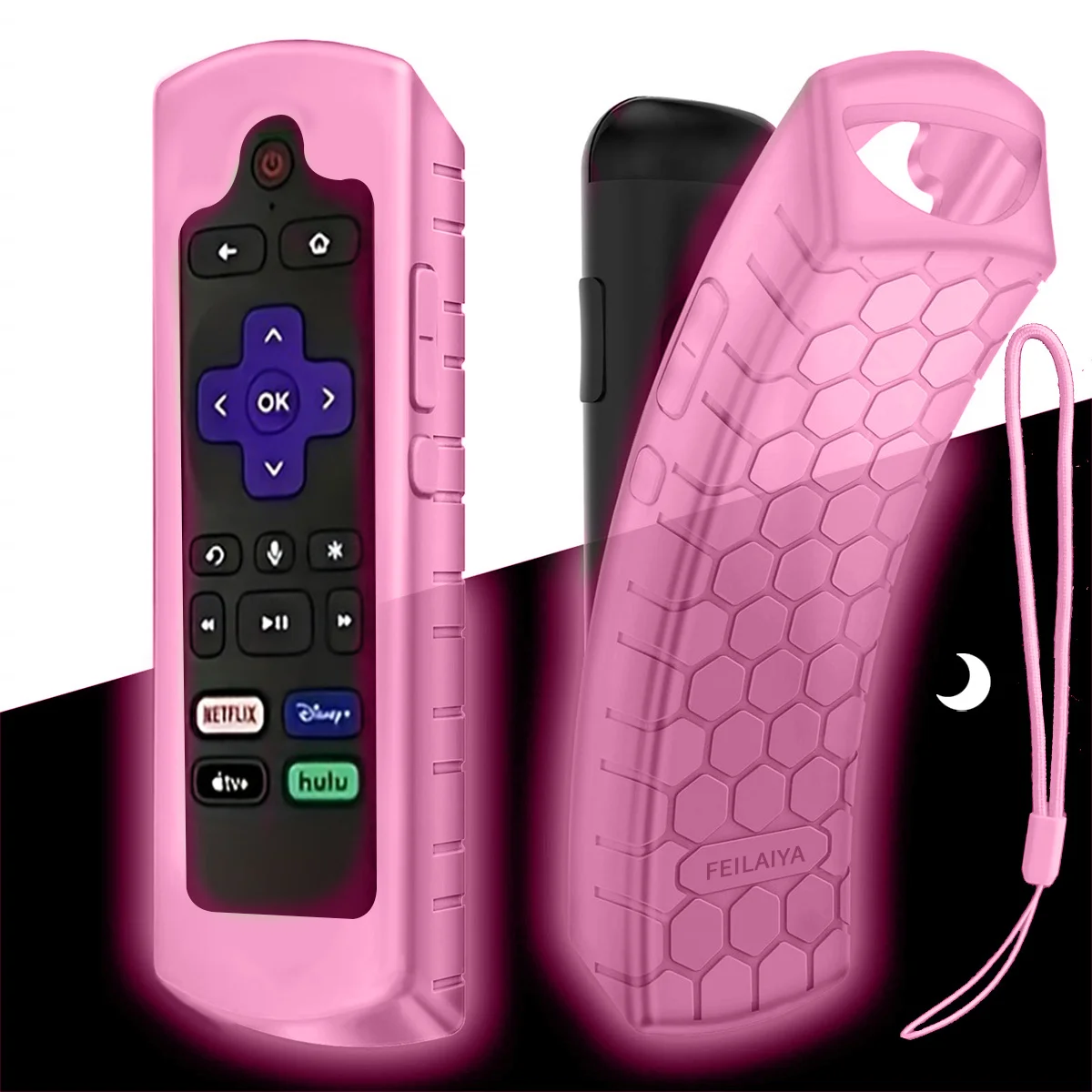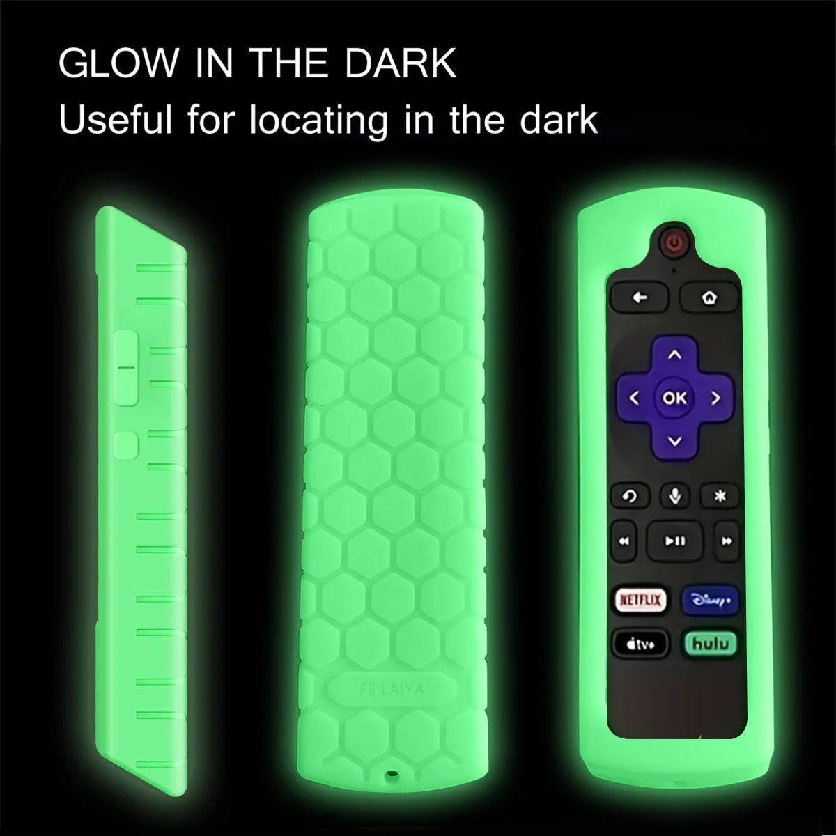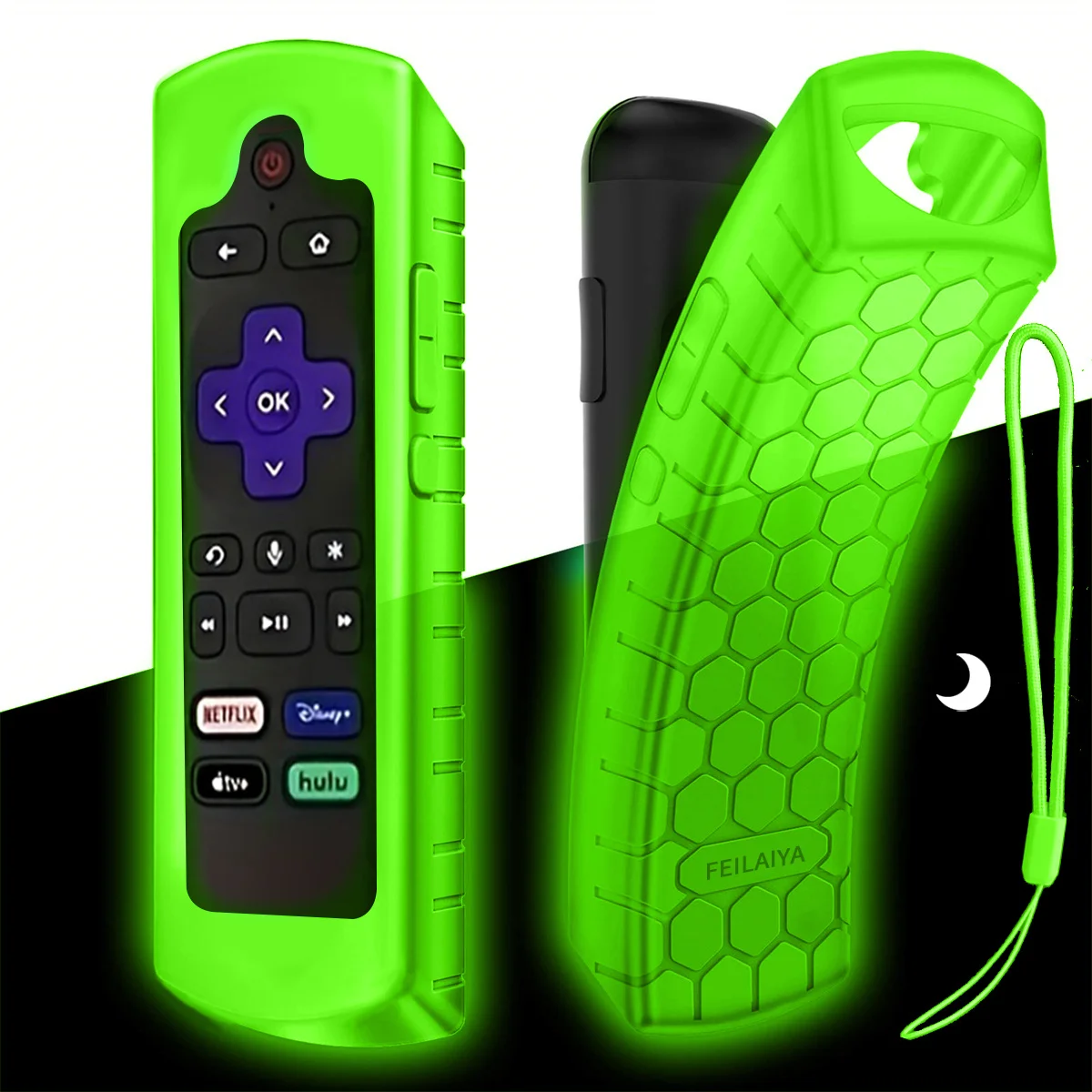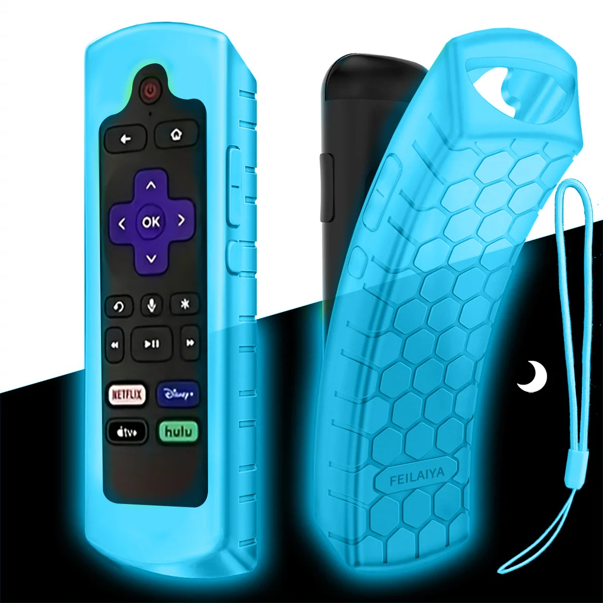 Glow in the dark premium silicone universal remote control cover with lanyard suitable for TCL Hisense Roku TV remote control
