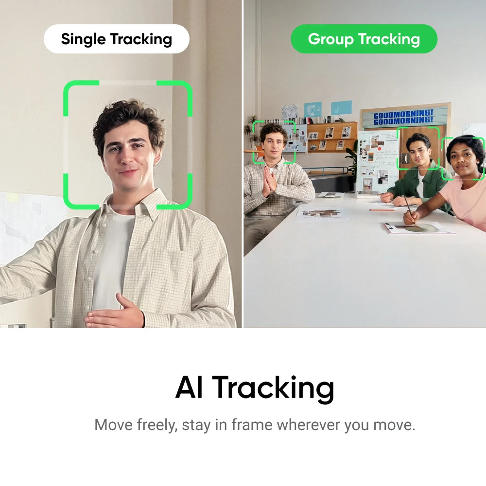 AI Tracking: Insta360 Link 2 physically pans and tilts to follow your movements around the room, keeping you or your group perfectly in frame.