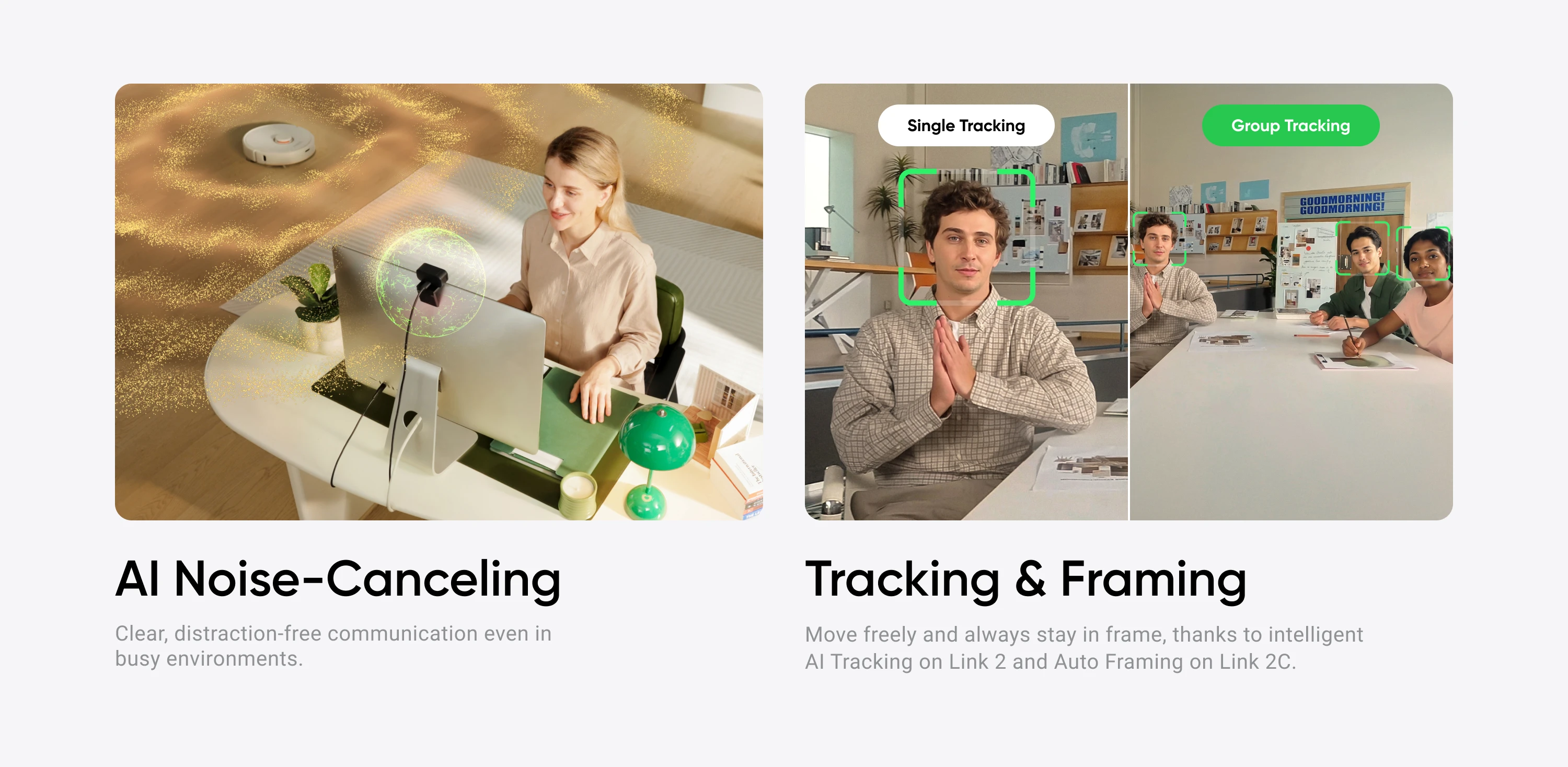 Professional Audio: Experience best-in-class audio with advanced AI noise-canceling algorithms. Filter out unwanted background noise for clear communication, even in busy environments.