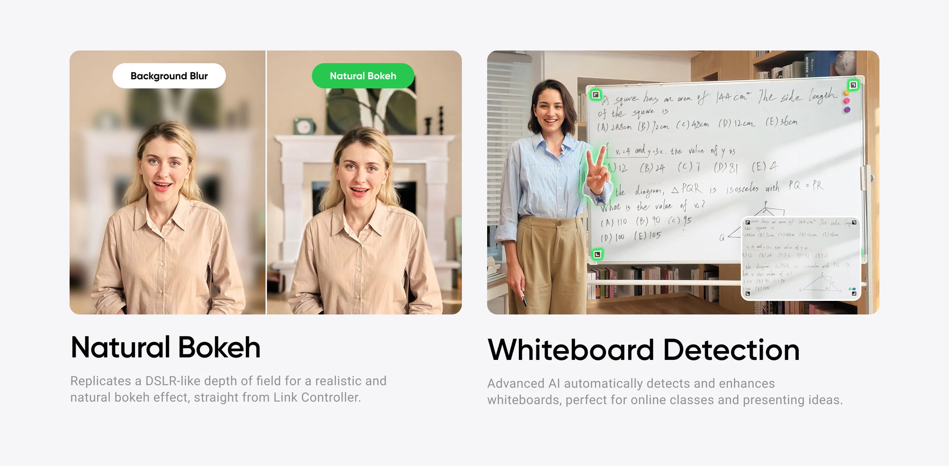 Natural Bokeh: Get a professional look by replicating a DSLR-like depth of field. Provides a realistic and natural bokeh effect, straight from Link Controller.