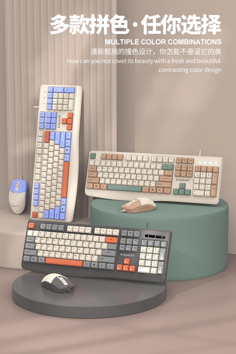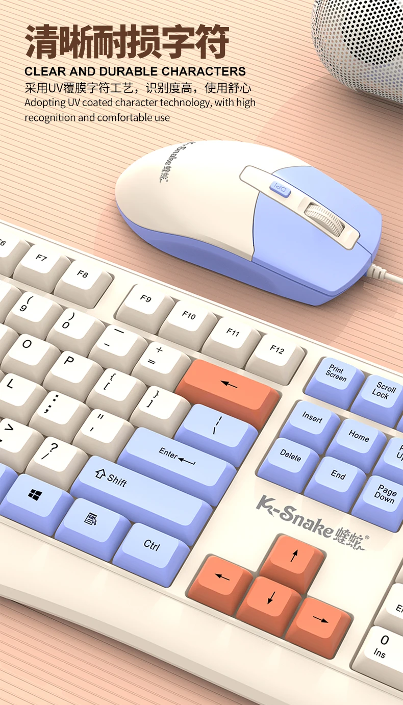 K-snake KM300 Wired Keyboard and Mouse Set USB Ergonomic Desktop Laptop Keyboard and Mouse Home Office