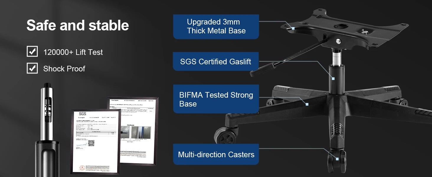 【Sturdy Computer Chair】 Different from the nasty cheap gaming chairs on the market without certified components, our chair utilizes the SGS Certified Class-3 Gaslift and BIFMA tested strong base. Internally, our chair is supported by a 1.8mm steel frame, ensuring enhanced durability for big and tall. Max Load: 330 lbs
