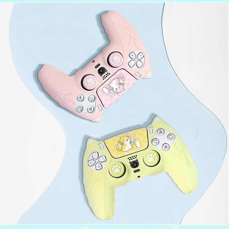 PS5 Controller Case Set Silicone Cute Cat Thumb Grip Caps + PS5 Controller Shell Cover + Stiker For SONY Playstation 5