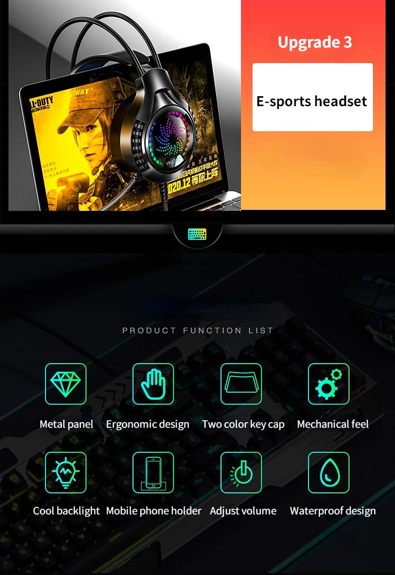 RGB Gamer Keyboard Gaming Keyboard and Mouse Headphone Gamer Kit Backlit USB Wired Computer KeyboardFor Pc Laptop 3 In1 Teclado