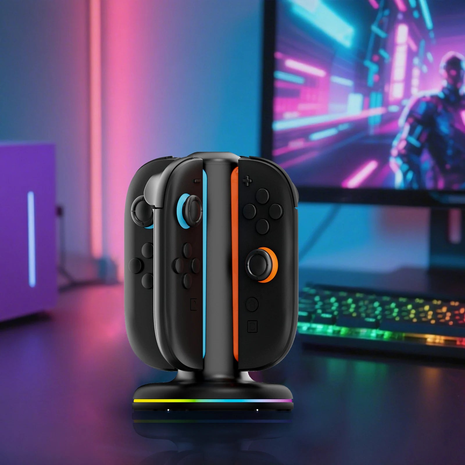 With 4 charging slots, supports charging one to four controller at the same time, orange light for charging, blue light for full.
