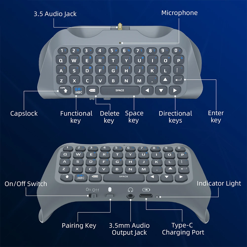 Wireless Controller Keyboard Bluetooth-Compatible 3.0 Controller Chat Pad 3.5mm Gaming Handle Keyboard for PS5 Gamepad