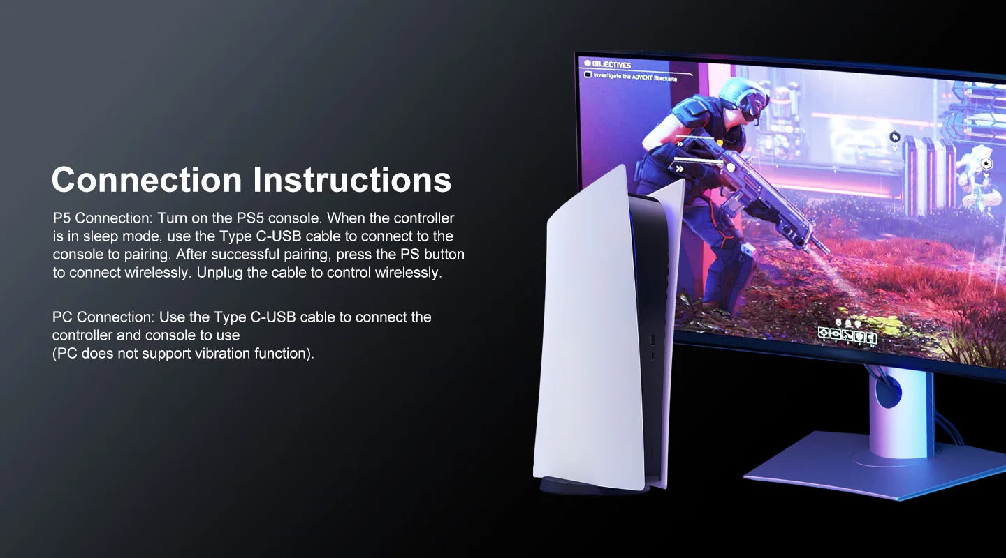 1. This product belongs to the P5 wireless controller, which is used to control various games on P5 consoles/PCs, allowing you to experience an immersive feeling during the game.